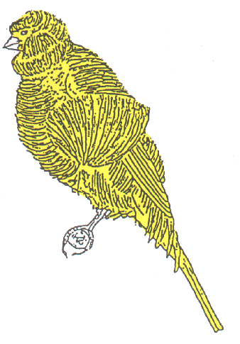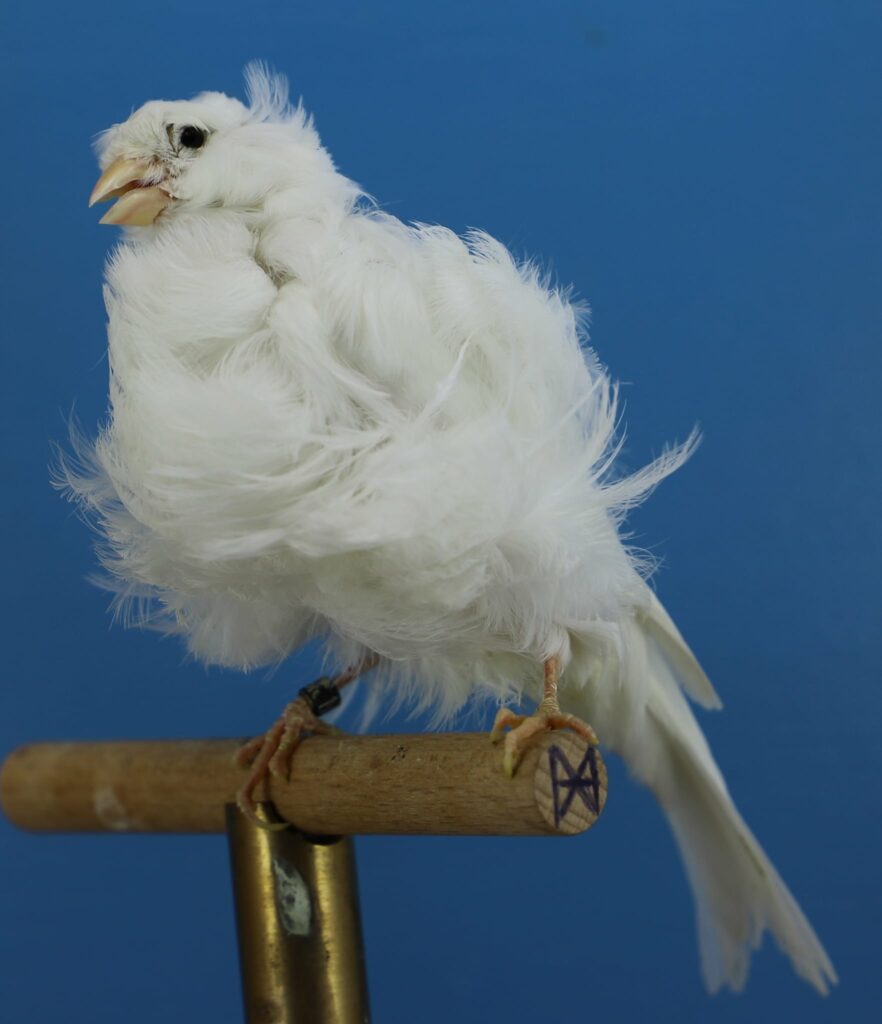Der Mehringer ist in allen Kanarienfarben einschließlich der Schecken zugelassen – Kopf, Rücken und Schwanz sollen eine gerade Linie in einem Winkel von ca. 60 Grad zur Sitzstangenebene bilden.