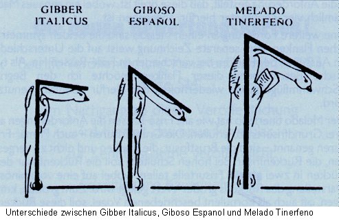Der Melado Tinerfeño ist eine Figuren-Frisé-Kanarienrasse und hat große Ähnlichkeit mit der seit dem auf der COM-Schau in Pirmasens anerkannten Giboso Español . Dennoch hat er besondere Eigenheiten, die ihn vom Giboso deutlich abgrenzen. Schon die Größe ist ein Merkmal. Hier soll er den Giboso überragen. Die Mindestgröße ist mit 18 cm angegeben – nach oben sind keine Grenzen gesetzt. Neben der Größe wird auch der Begriff >kräftig< erwähnt. In der „Arbeitshaltung“ soll auch der Melado Tinerfeño die Form einer >1< zeigen. Beim Melado Tinerfeño finden wir Körperpartien mit glatter Befiederung und solche mit Frisuren. Dieses ist bei einigen anderen Frisé-Rassen ebenso der Fall, z.B. beim Nordholländer, aber beim Melado haben wir es mit zwei speziellen Partien glatter Befiederung zu tun. Brustbefiederung, im spanischen > vibrizas < genannt werden, und die Federn an den Schenkeln als > Filoplumas < bezeichnet.