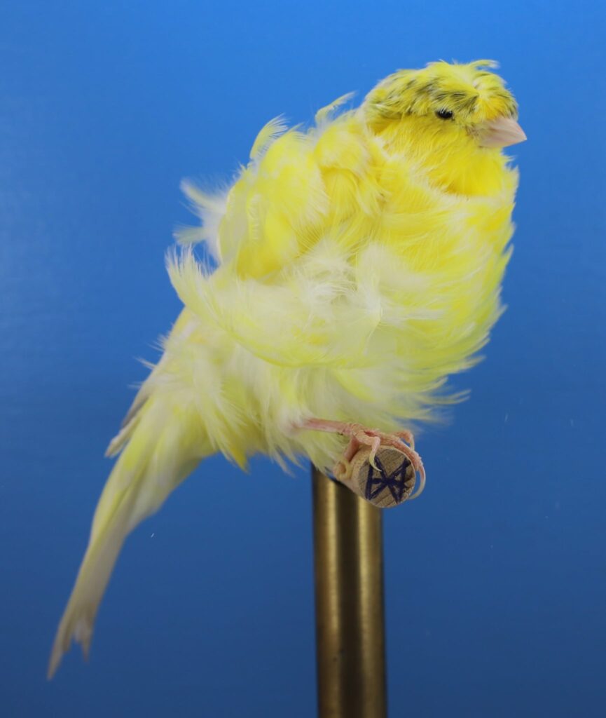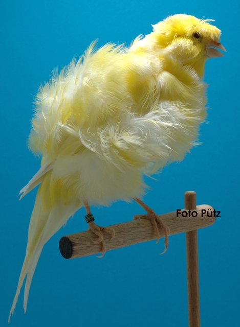 Der Paduaner ist eine große Frisé -Kanarienrasse mit aufrechter Haltung und in allen Kanarienfarben einschließlich der Schecken zugelassen.